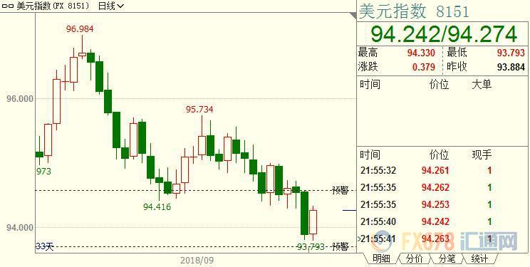 截至发稿,现货黄金转跌1.14%至1193.46美元/盎司,并刷新本周低点至1191.95美元;美元指数升0.42%到94.282。美元指数盘中创7月9月以来新低93.793,现货金价盘中创六个交易日新高1211.10美元/盎司。