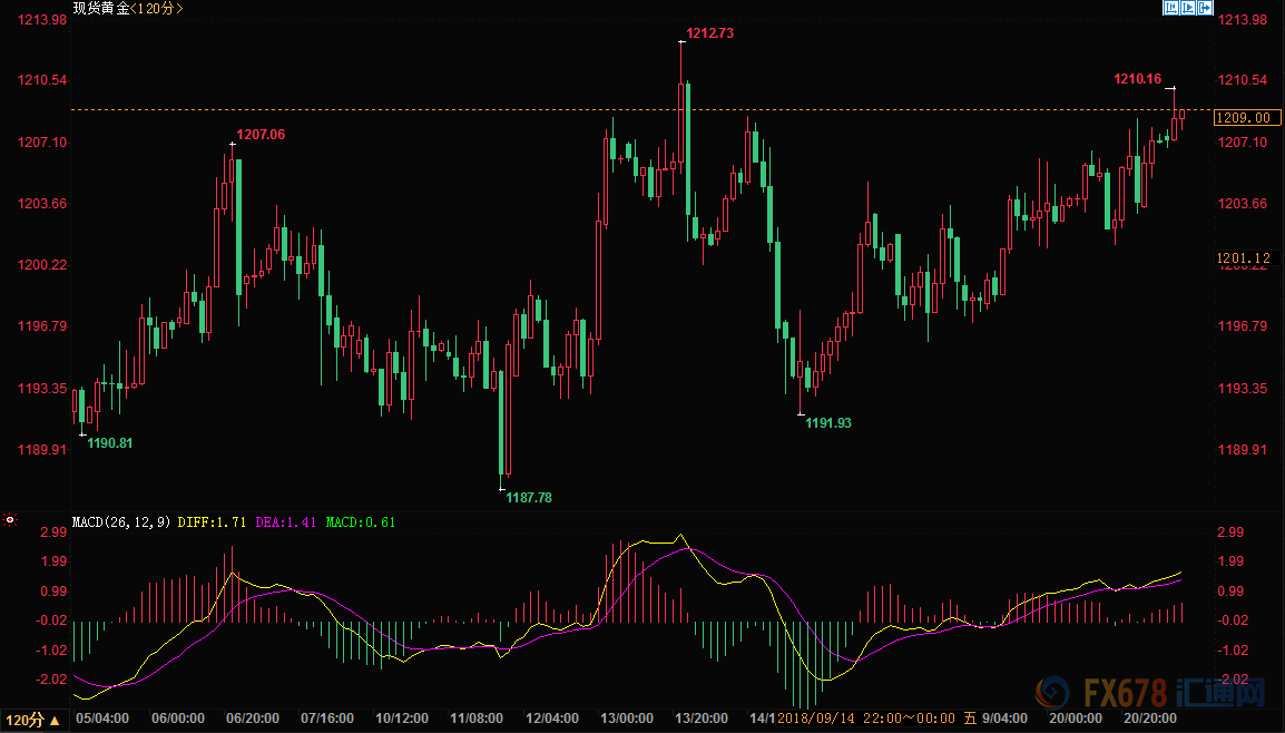 截至北京时间9月21日11:20,现货黄金报1208.78美元/盎司,现货白银报14.386美元/盎司。