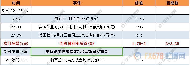 周三(9月26日)美联储利率决议;美联储主席鲍威尔讲话;