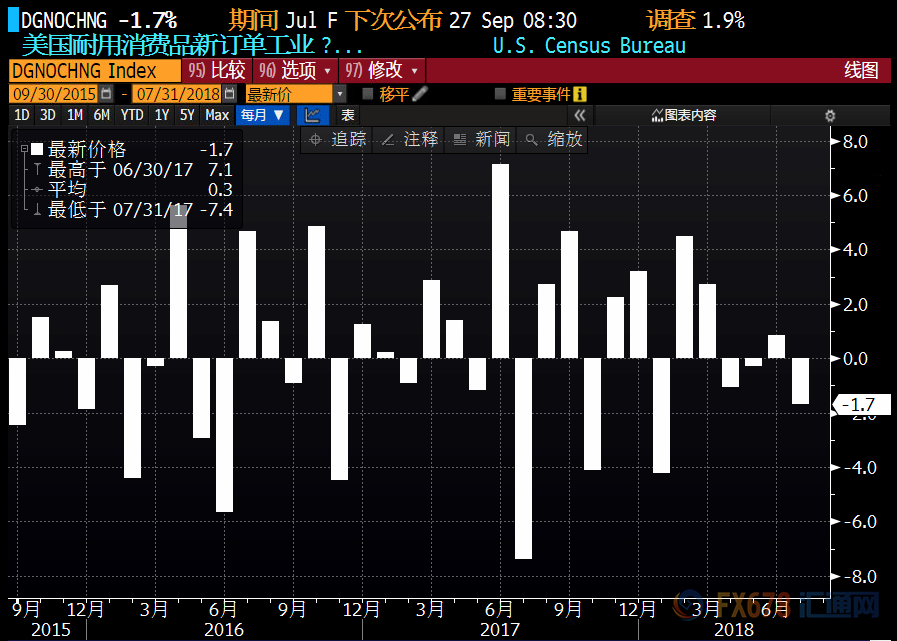 目前市场对8月耐用品订单数据的预期比较乐观,有望录音五个月来最近表现,在数据出炉前,有望给美元提供一定的支撑。