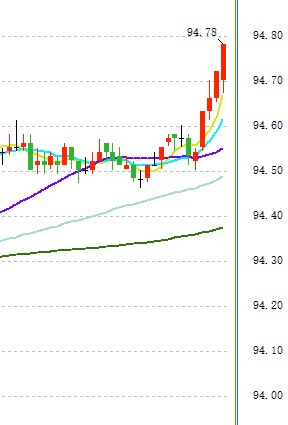 尽管短线在94.60一线受阻,但是回调只要持稳94.40上方将维持偏强的走势前景,若符合预期突破94.60,进一步走强可能指向94.80以及95.00等水平。