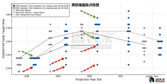 最新点阵图显示,除非经济形势意外恶化,否则12月再加息一次几乎毫无悬念。大部分官员预期美联储明年需要加息至少三次,然后到2020年再加息一次。