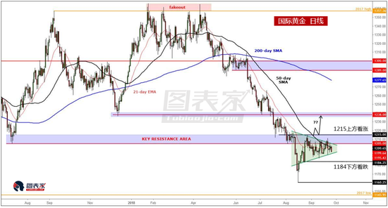 FOREX.com分析师Fawad Razaqzada表示,黄金受制于1205/15关键阻力区域,且区间盘整的迹象明显。只有当金价突破此阻力区域并守在该区域上方,或先在较低的价位出现明确的反转形态,才会转为看涨。否则,鉴于更高时间周期上价格的低点和高点仍然在下移,技术面少有或没有看涨的理由。