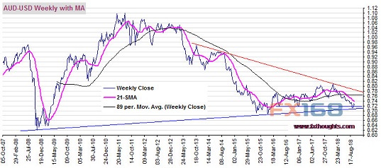 (澳元/美元周线图 来源:Kshitij、FX168财经网)