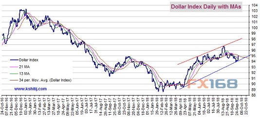 FX168财经报社(香港)讯 周五(9月28日)亚市盘中,美元指数维持在95关口附近,现货金徘徊于1183美元/盎司左右的水平。Kshitij咨询服务团队(Kshitij Consultancy Service)周五最新撰文对黄金、欧元/美元、美元指数、美元/日元、欧元/日元、英镑/美元以及澳元/美元后市走势进行前瞻分析。