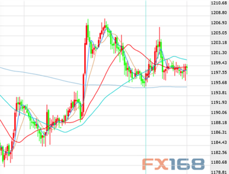 北京时间16:23,现货黄金报1198.86美元/盎司。