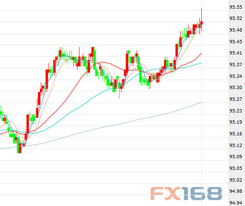 纪要出炉之后,美元指数升至日高,高见95.56,日内涨幅扩大至0.5%,但较纪要发布之前变动不大。