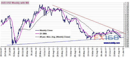 (澳元/美元周线图 来源:Kshitij、FX168财经网)