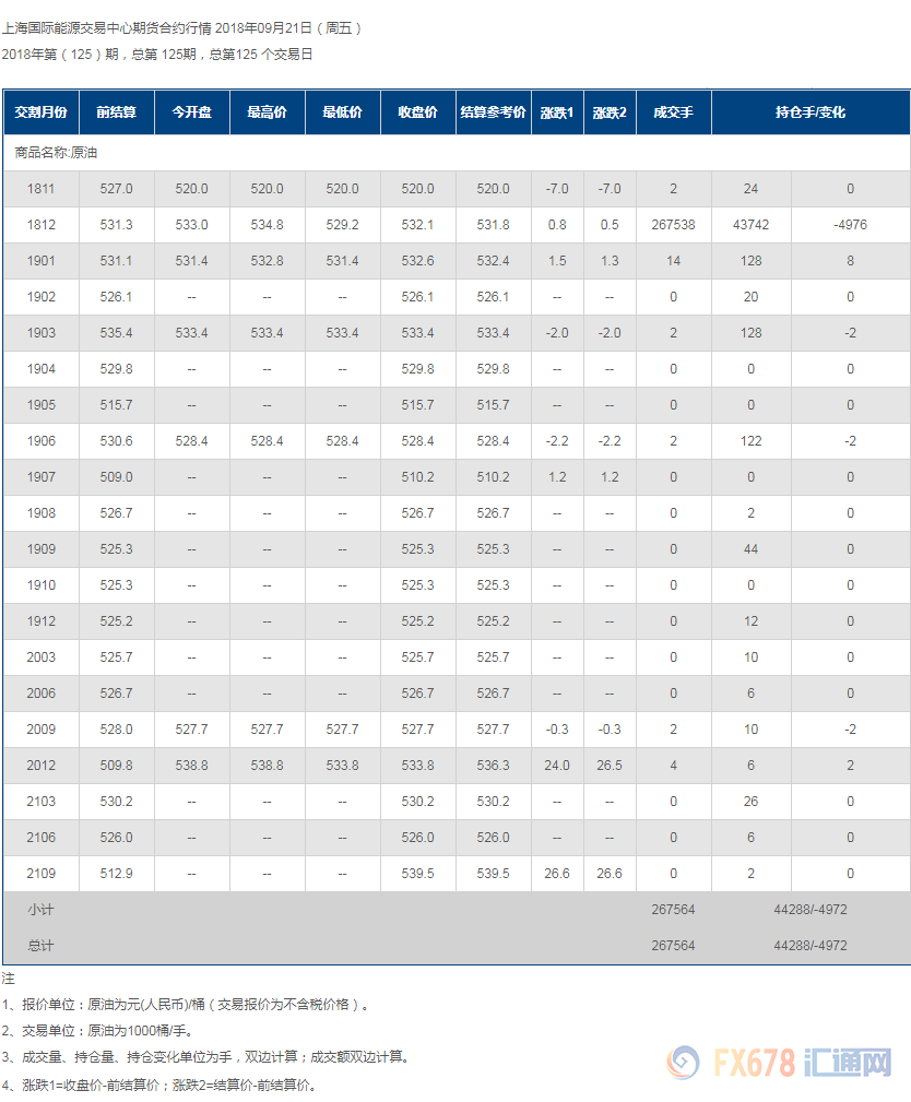 上海原油价格上涨。主力合约SC1812,以532.1元/桶收盘,上涨0.8元,涨幅为0.15%。全部合约成交267564手,持仓量减少4972手至44288手。主力合约成交267538手,持仓量减少4976手至43742手。