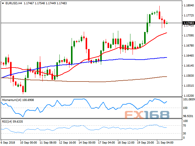 欧元方面,欧元/美元上周五收盘报1.1748,此前触及1.1802,为6月中旬以来的最高水平。