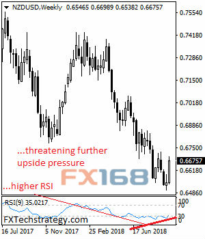与此同时,周线图上看,RSI指标走高,指示纽元/美元将进一步上涨。