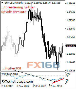 与此同时,周线图上看,RSI指标走高,指示欧元/美元面临进一步上涨的空间。