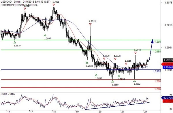 (美元/加元30分钟图 来源:Swissquote Bank、FX168财经网)