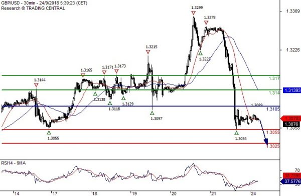 理由:只要1.3105阻力不被超越,跌破1.3055的风险就仍然很高。