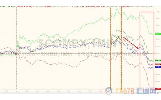 周三美股三大股指涨势在尾盘消失殆尽,因投资者降低风险,此前美国美联储一如预期宣布加息。道琼斯工业平均指数收跌99.74点,跌幅0.38%,报26392.47点;标普500指数收跌8.77点,跌幅0.3%,报2906.79点;纳斯达克指数收跌15.78点,跌幅0.2%,报7991.69点。