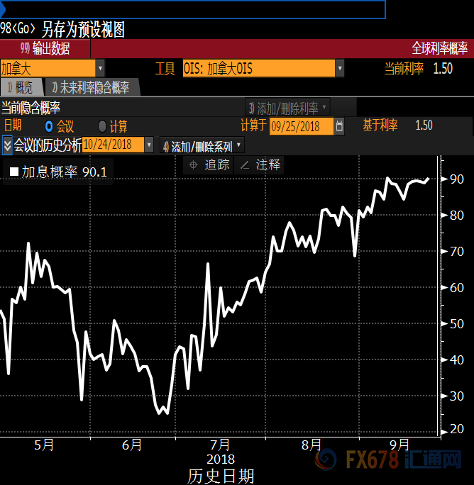 整体对数据的乐观预期强化了管理委员会对经济前景的评估,目前市场预计10月24日加息的概率高达90%之上。