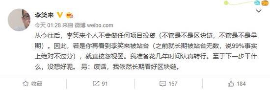 他表示,不管是不是区块链,不管是不是早期项目,他都“不会做任何投资”。他还称,若是再看到他“被站台”,可以“直接忽视”。不过他也表示:“依然长期看好区块链。”