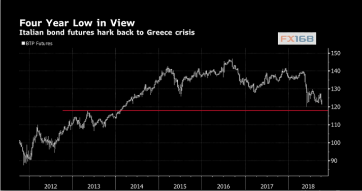(意大利政府债券期货走势,来源:彭博,FX168财经网)