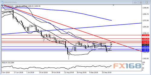 FX168财经报社(香港)讯 周三(10月3日),继前一交易日大幅上涨之后,现货金银转而下跌,其中现货黄金再次跌破1200美元/盎司大关。