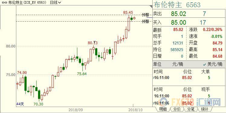 油价在7月初上攻该障碍位未果,但这次第二次上攻看来已成功。根据回档分析,下一道阻力将在86.66美元。