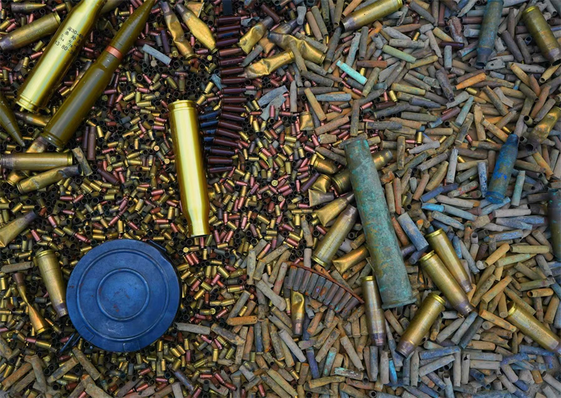 作品的创作初心,始于2022年俄乌冲突中刺痛人心的成堆弹壳。艺术家邱天仁耗时多年,收集了来自第一次世界大战、第二次世界大战、伊拉克战争、俄乌冲突等不同时期的战争遗留弹壳。这些冰冷的金属残片,曾是撕裂生命的凶器,如今被熔铸为雕塑的筋骨,成为铭刻伤痛记忆的载体。